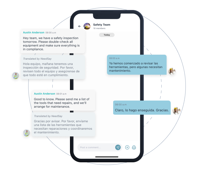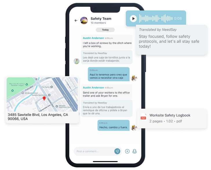 Facilitate seamless communication on-site with real-time speech translation, ensuring everyone understands correctly.